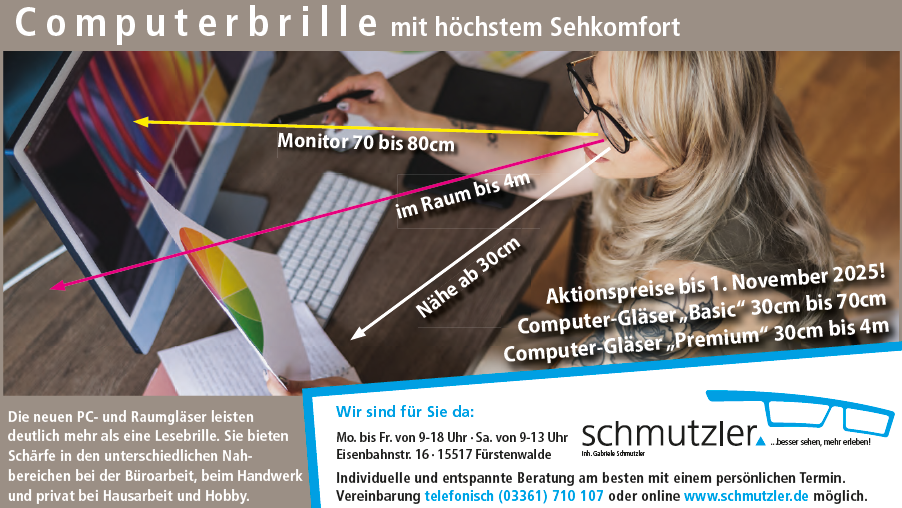 AKTION Computerbrille 4. Oktober 2025 Gültig in Fürstenwalde, Strausberg, Zossen Nutzen Sie die Gelegenheit: Mehr Sehkomfort am Computer. Sparen Sie bis zu 100€ für ein Paar Gläser, nur bis zum […] Herunterladen
